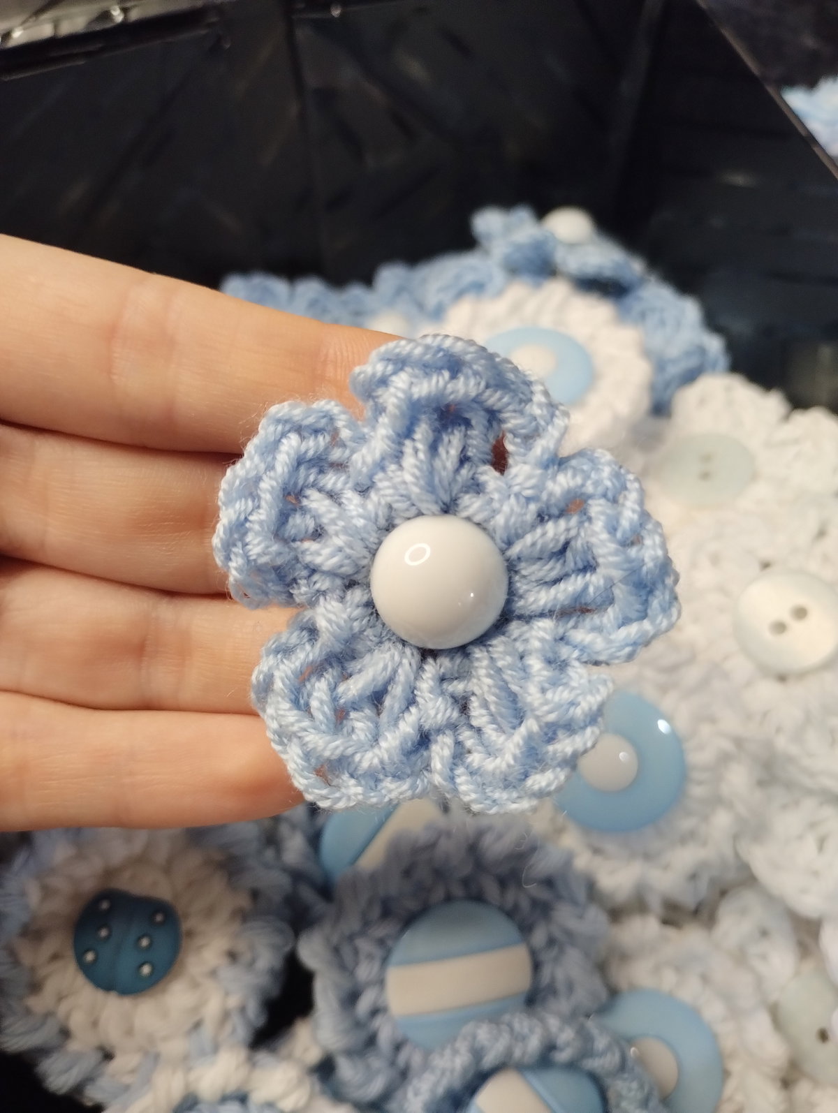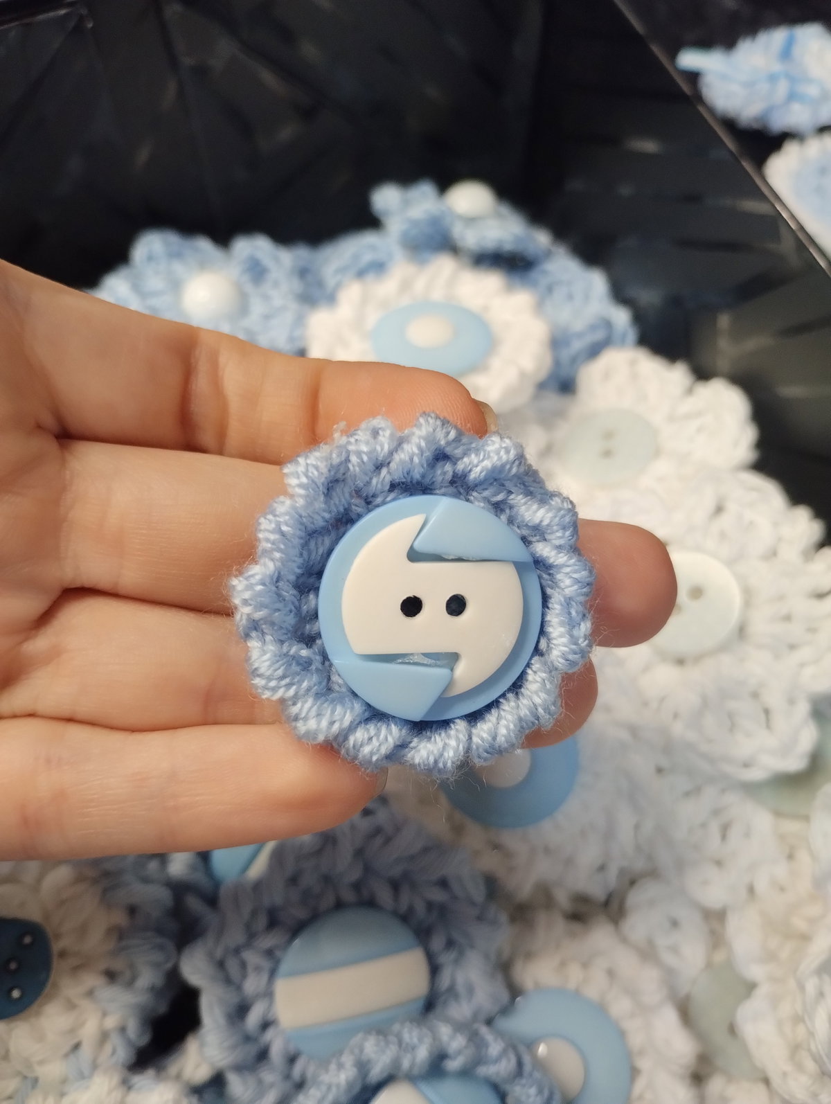 Modelos surtidos escarapelas CHICAS, tejidas a mano, diseños únicos, con botones cintas y el prendedor