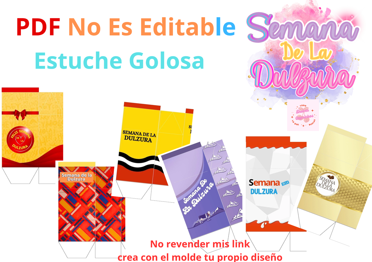 Es PDF. No es Editable. Contiene 6 estampados referidos a golosinas con logo de la semana de la dulzura, únicos y exclusivos. Cómo se ven en la imagen.