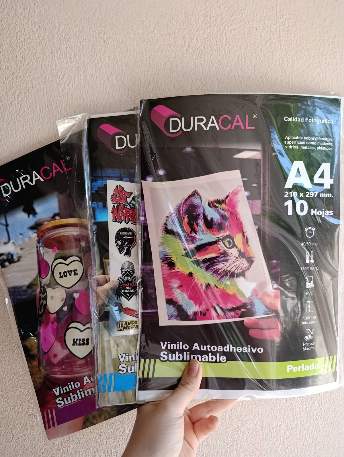 Marca duracal son tamaño A4 vienen por 10 hojas son aptos para sublimar no para imprimir inkjet,tenemos diferentes efectos puedes elegir el que más te guste