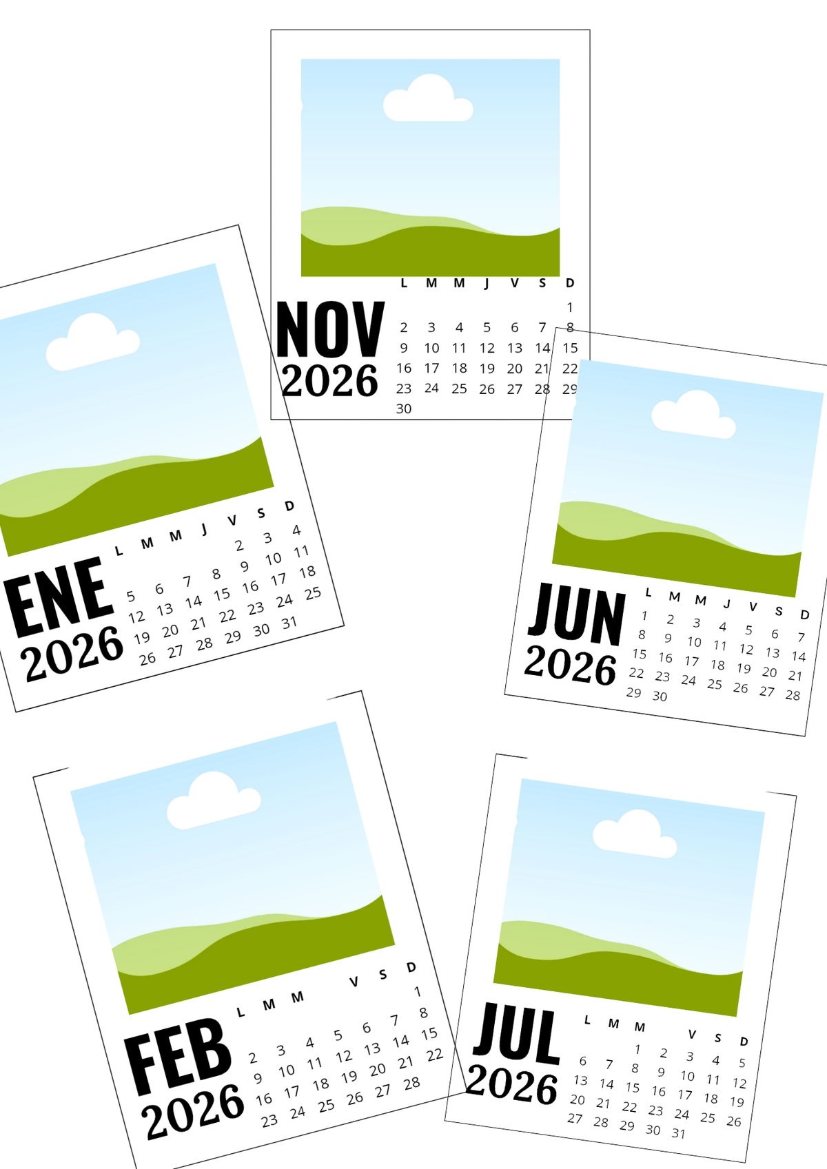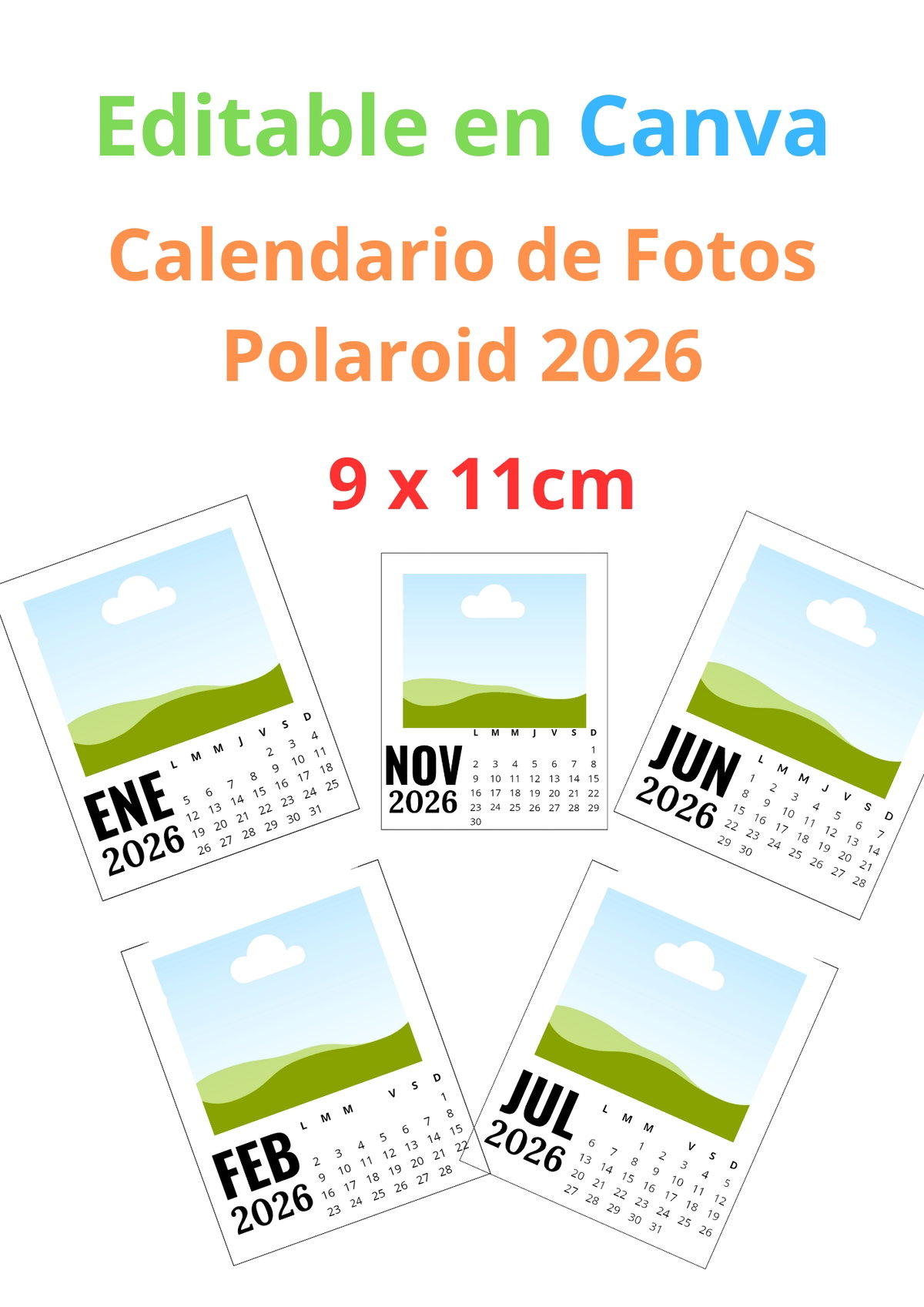 Calendario 2026 editables en canvas con el formato de fotos Polaroid para agregar las imágenes