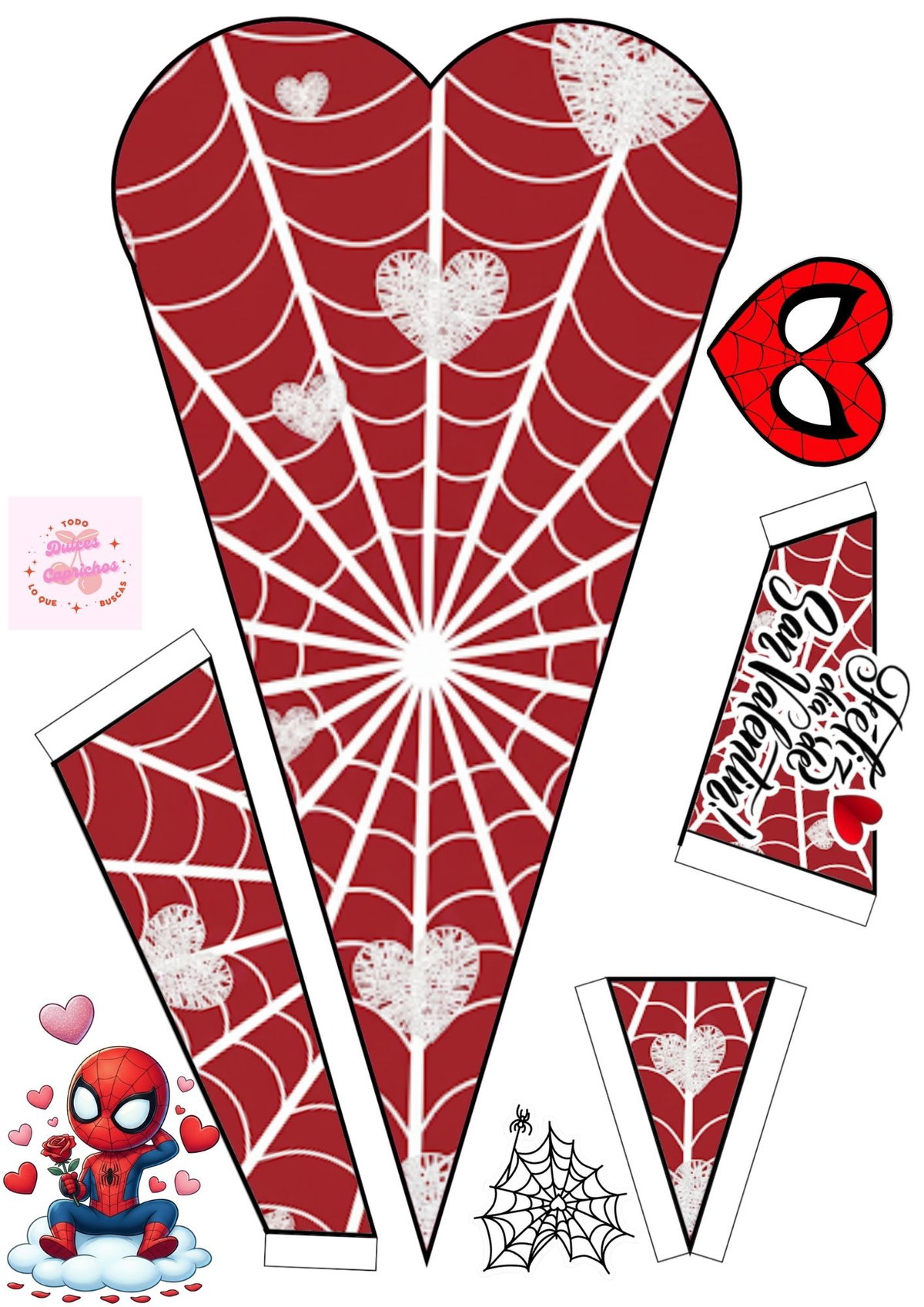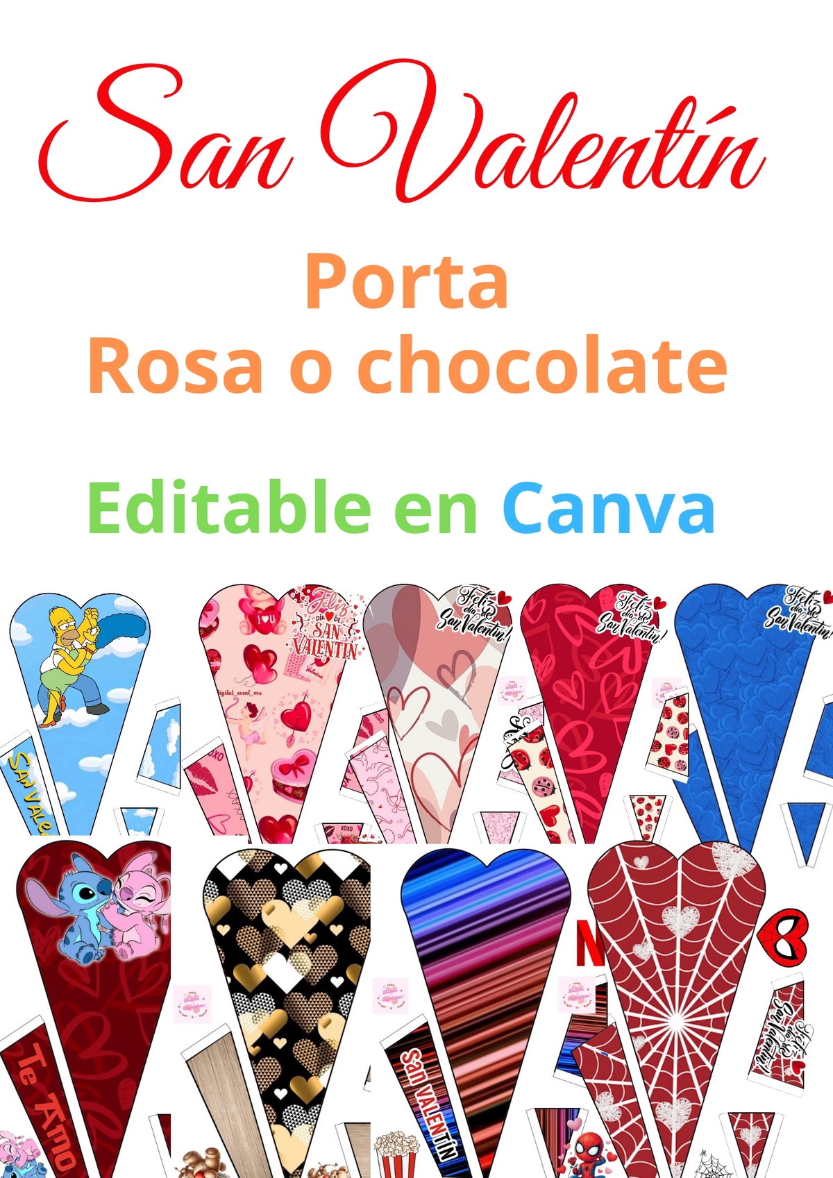 Ramo plano edición San Valentín con nueve estampados listos para imprimir editable en canva se arma con una sola hoja 4 ideal para chocolate paleta o flor